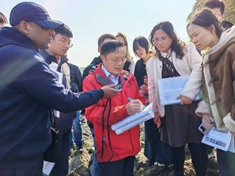 实验室与会人员野外合影(左)李三忠教授野外讲解构造现象(右)